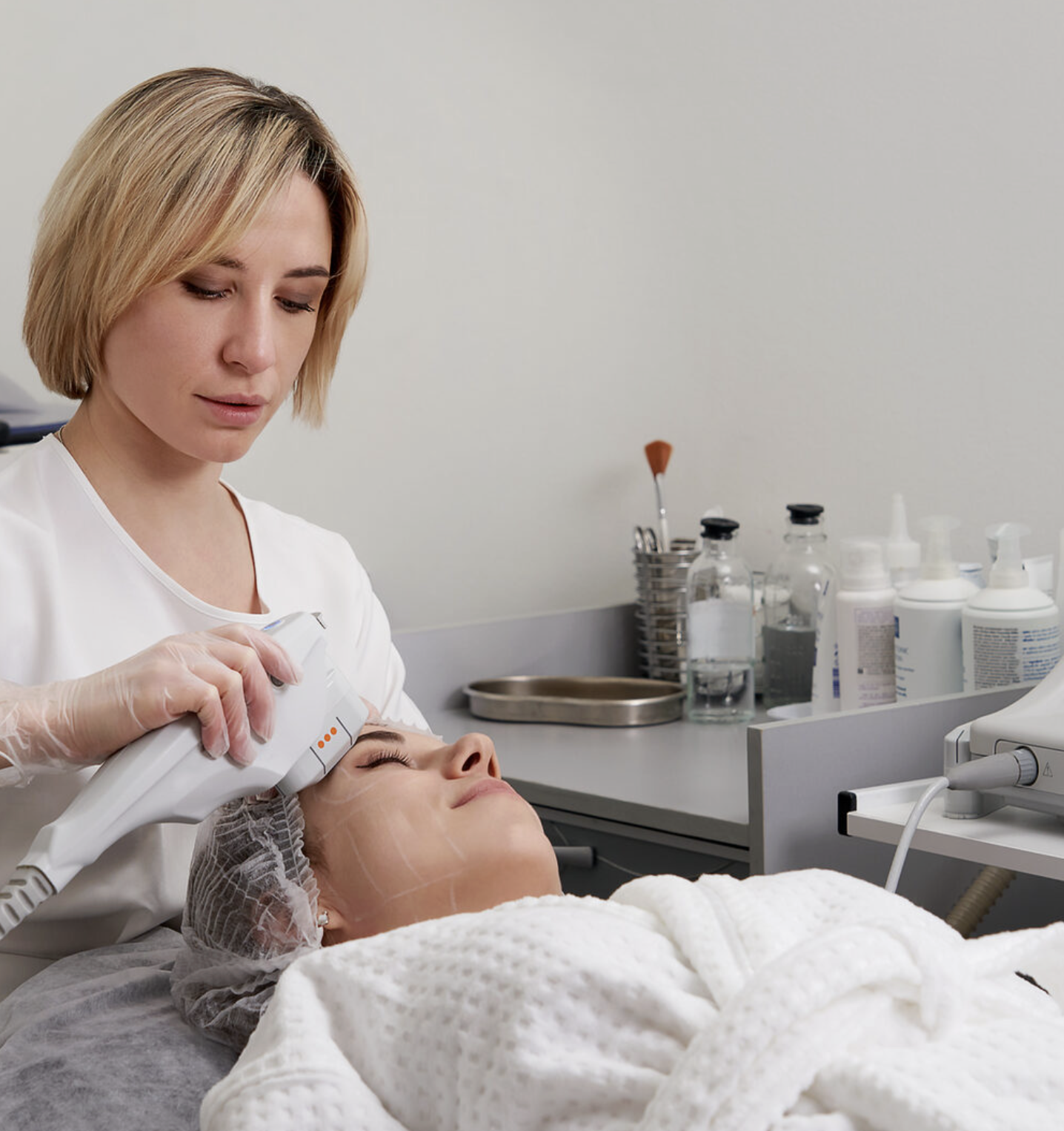 В клинике «Соло» мы используем оригинальный аппарат Альтера Систем (Ulthera System) с функцией визуализации Deep See, которая позволяет в ходе процедуры видеть на мониторе глубокие слои кожи и мышечно-апоневротический слой и контролировать оптимальную глубину воздействия. Ультразвуковое сканирование кожи также позволяет точно определить толщину кожи, наличие филлеров и другие индивидуальные особенности пациента.